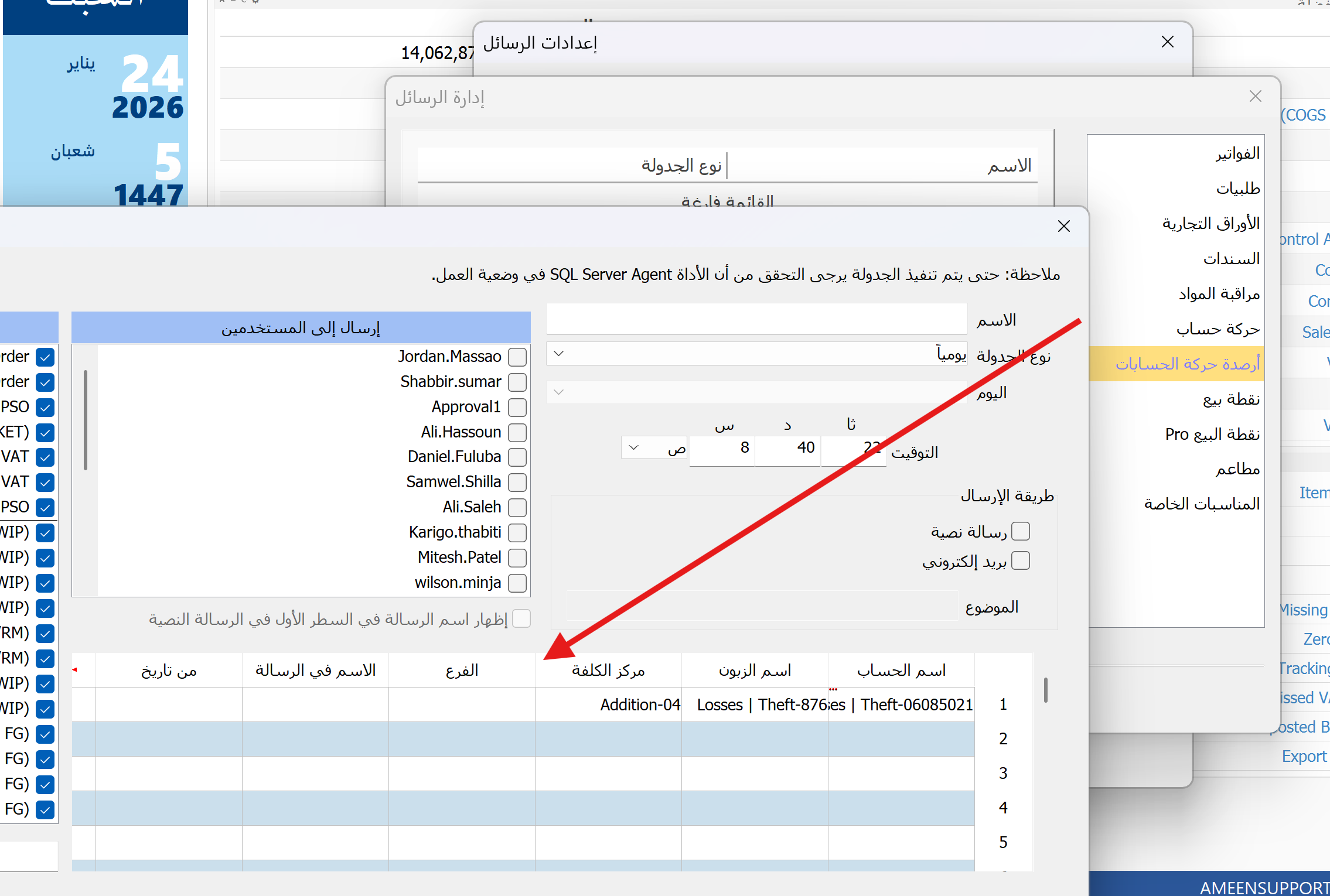 نظرا لتطورات العمل ، أرجو دراسة ميزة اضافة عامود الرصيد الآعظمي و عامود الفرق بين الرصيد الاعظمي و الرصيد الى نافذة اعدادات الرسائل والقصيرة و البريد الالكتروني في نافذة أرصدة الحسابات كي يتمكن المسؤولين من ادارة مبيعات مثلا من تتبع أرصدة الزبون و تدارك الرصيد الاعظمي و اتخاذ القرار الصحيح في الوقت المناسب
